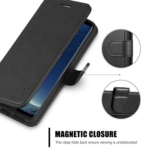 TUCCH Custodia Galaxy S8, Custodia in Pelle Galaxy S8, Custodia Copertura di Vibrazione Portafoglio Flip Cover, con Chiusura Magnetica per Samsung Galaxy S8 (5,8 pollici, 2017), Nero