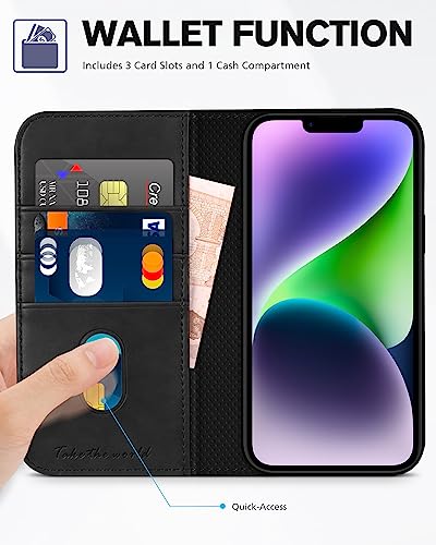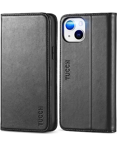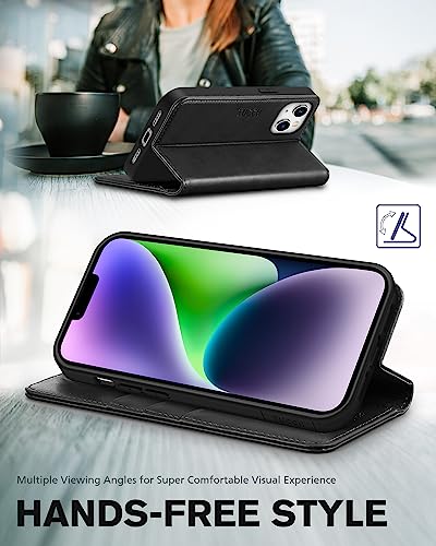 TUCCH Custodia per iPhone 14 5G, Cover [Blocco RFID] Portafoglio Pelle Sintetica TPU Antiurto, Funzione Supporto Slot Schede Protezione Integrale Compatibile con iPhone 14 (6,1 pollici, 2022) - Nero