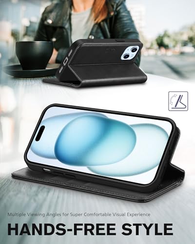 ✯✯✯ Ritagli Precisi e Supporto di Visualizzazione ✯✯✯ La custodia a portafoglio per iPhone 15 (6.1") 2023 è dotata di ritagli precisi per un facile accesso a tutti i pulsanti, le porte e le fotocamere. Regola l'angolazione per trovare la prospettiva migliore. Perfetto per le videochiamate o per guardare film