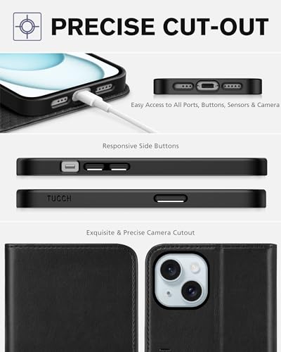 ✯✯✯ Design Esclusivo per iPhone 15 (6.1") 2023 5G, NON ADATTO ad altri telefoni ✯✯✯ La custodia a portafoglio TUCCH per iPhone 15 (6.1") 2023 presenta una combinazione di pregiata pelle PU e custodia interna in TPU antiurto per una protezione completa per il tuo iPhone 15. Nota: questa custodia per telefono non funziona con MagSafe