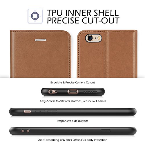 TUCCH Custodia iPhone 6s, Custodia Pelle Sintetica, in Piedi la Vista Diario Custodia Copertura di Vibrazione Portafoglio Flip Cover Chiusura Magnetica per iPhone 6s / iPhone 6 4.7 Pollici - Marrone