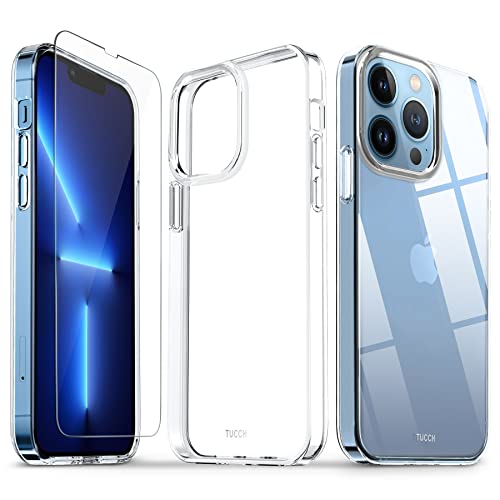 TUCCH Custodia Trasparente Rigida Cover iPhone 13 Pro 5G Antiurto Anti-Graffio Vetro Proteggi Schermo Leggera Ricarica Wireless Compatibile con iPhone 13 Pro (6,1 Pollici 2021), Cristallino