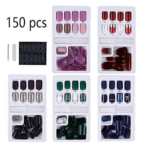 Il pacchetto include 150 pezzi di unghie finte in 5 stili diversi, soddisfa le tue esigenze quotidiane di unghie fai da te.(Senza Colla)