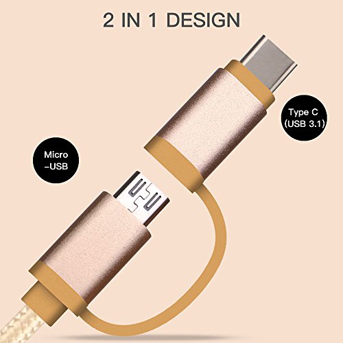 TUCNIPUS Cavo di Ricarica USB 3.1 Tipo C e Micro USB, 1 Metro 2 in 1 Cavo di Ricarica in Nylon per Telefono Android, Mac-book, Chrome Pixel e More-Gold