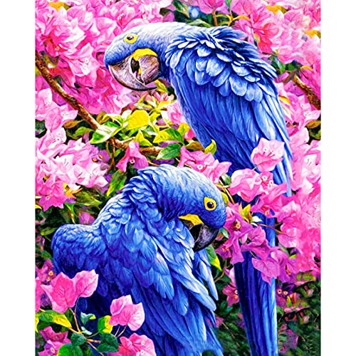 Tucocoo Dipinto a olio fai da te incorniciato con i numeri, per adulti e bambini, con pappagallo blu, bella immagine di uccelli selvatici, pittura a olio su tela, set da disegno, regalo di alta