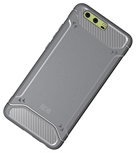 TUDIA Ultra Sottile [TAMM] Fibra di carbonio Bumper in TPU custodia protettiva Per Huawei P10 Plus (Grigio)