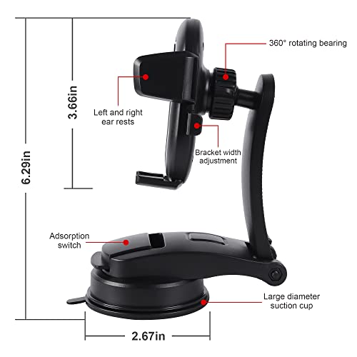 Tudo Supporto per telefono da auto - Supporto per telefono per parabrezza resistente per auto - Supporto per telefono girevole a 360 gradi - Supporto per telefono senza vibrazioni per cruscotto auto
