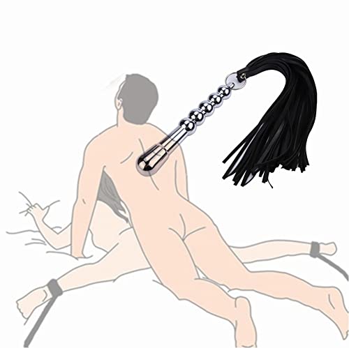 TUEiudx Coppia di Frusta in Pelle con Tappo in Metallo 2 in 1 per Adulti