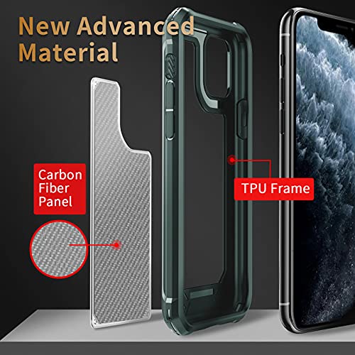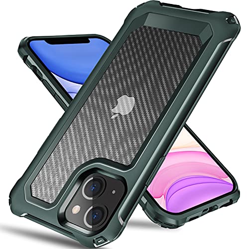 Tuerdan - Custodia per iPhone 13, resistente agli urti, con retro in fibra di carbonio rigida, cornice in TPU morbido, antigraffio, custodia protettiva per iPhone 13 da 6.1", verde