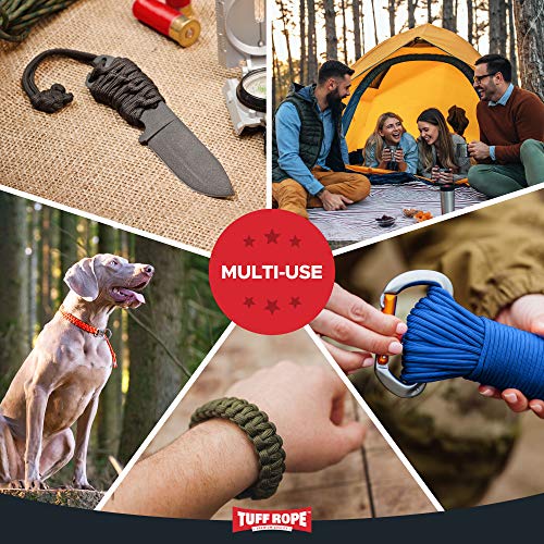 Tuff Rope Paracord 550 (nylon) - 30 m x 4 mm - Corda per esterni - Diversi colori - 7 fili (nero/nero)