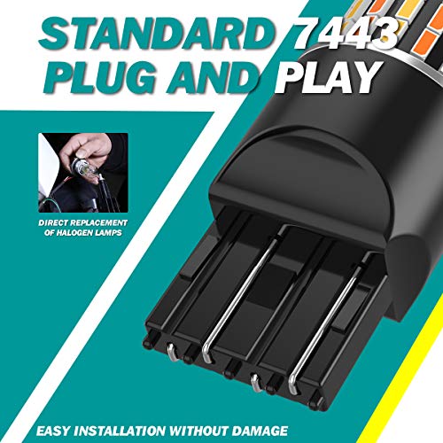 TUINCYN 7443 7444 992 T20 LED di commutazione LED Indicatori di direzione Lampadina bianca / ambra Interruttore posteriore bicolore Chip 120-EX Lampadina LED DRL (confezione da 4)