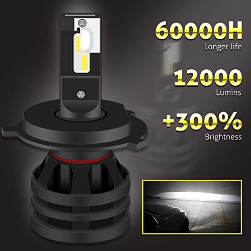 ★【Confezione da 2】Lampadina faro LED chip H4 / HB2 / 9003 CREE superiore, design mini dimensioni, dimensioni quasi 1: 1 uguale alle lampadine di serie, fascio chiaro a 360 gradi senza zona cieca.