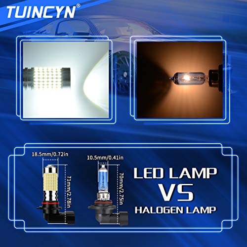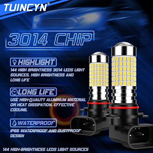 TUINCYN 9005 HB3 H10 Lampadina fendinebbia a LED Xenon Bianco 6000K 3014 Chipset 144SMD Super Bright DRL Luce di Marcia Diurna Lampada di Guida DC 12V-24V (Confezione da 2)