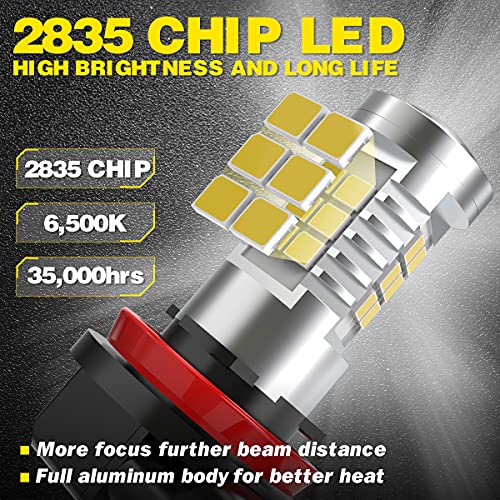 【Confezione da 2】Lampadina LED standard H8 / H11 / H9 con LED 2135 SMD ad alta potenza, lampadine a incandescenza più luminose del normale.