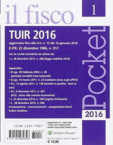 TUIR 2016. Testo unico delle imposte sui redditi