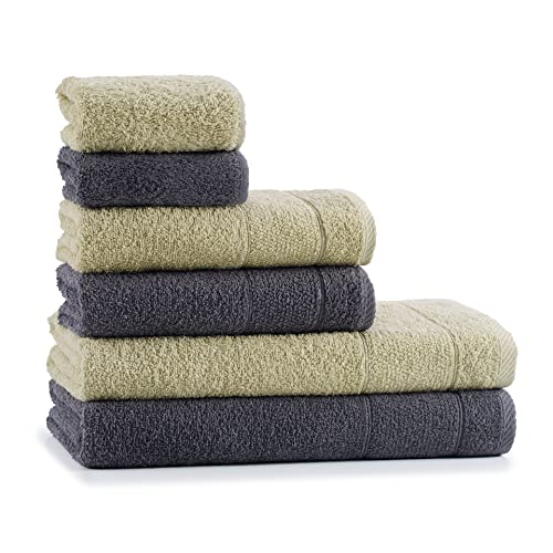 Tuiste Set Asciugamani Bagno Grigio Antracite Scuro - Verde Salvia, Hotel, Cotone, 2 Teli Doccia 70x140cm + 2 Asciugamani Viso 40x70cm + 2 Asciugamani Ospiti 30x50cm, Asciugamani Bagno Viso e Bidet