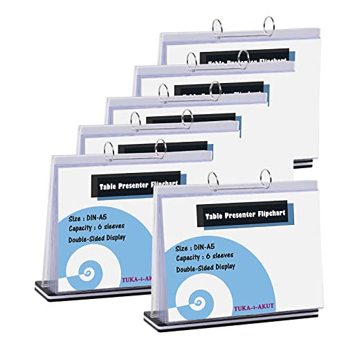 TUKA-i-AKUT 6x Espositore da Tavolo in Acrilico, A5 Orizzontale, Lavagna a fogli mobili per Presentazioni, Presentatore con Base, Supporto Menu Segno Poster, 6 Buste Trasparenti, TKD8210-A5-6x