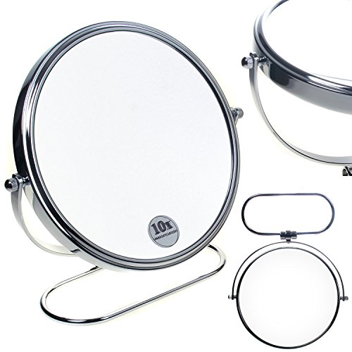 TUKA Pieghevole Doppio Cosmetico Specchio 10x ingrandimento, Specchio Bagno per Trucco e Rasatura, risulta utile non solo per il make-up quotidiano ma anche per la cura del corpo. Rasatura, sfoltimento delle sopracciglia o battaglia contro i punti neri.