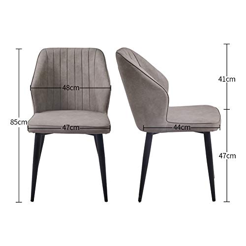 TUKAILAI - 2 sedie per sala da pranzo, cucina e salotto, in ecopelle, stile retrò, con gambe in metallo, colore: grigio chiaro