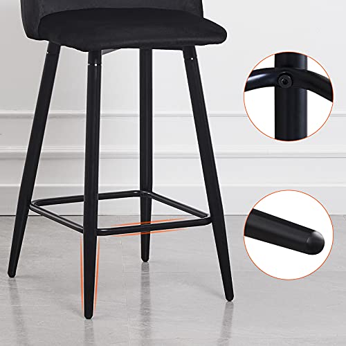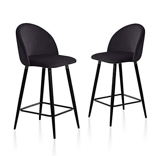 TUKAILAI Set di 2 Sgabelli da Bar Neri con Schienale Rivestito in Velluto e Poggiapiedi e Base in Metallo per Colazione Bar Alta Cucina e Casa