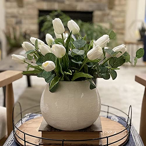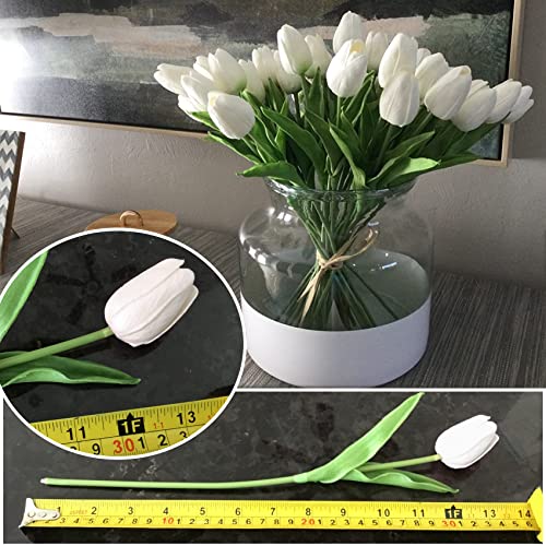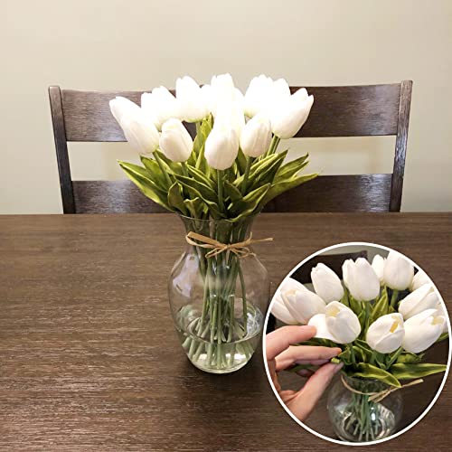 Tulipani artificiali bianchi in seta (20 steli) per decorazioni domestiche e matrimoni, 34,3 cm, tulipani finti, centrotavola per tavolo da pranzo, piante artificiali, composizione di fiori bianchi,