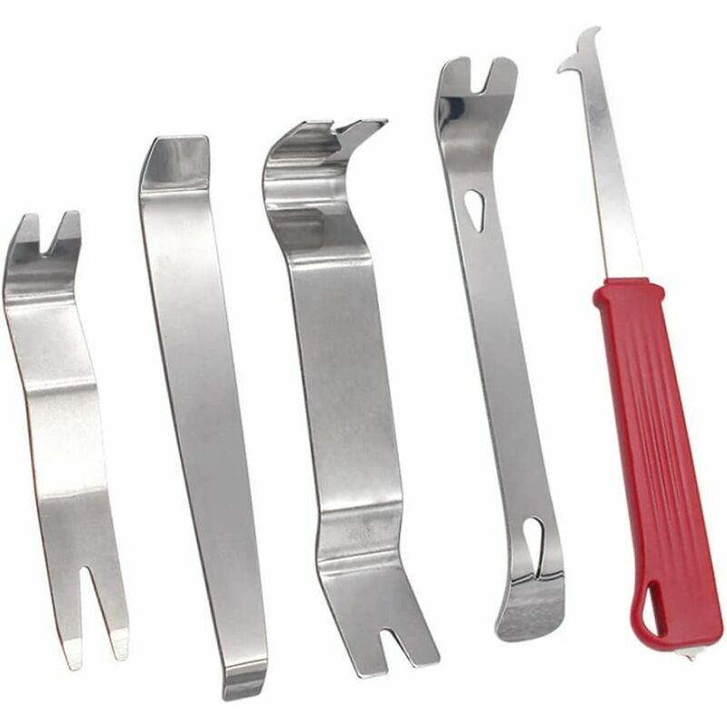 Il pacchetto include: 5 leve in acciaio inossidabile di varie dimensioni. Rimuove facilmente finiture, modanature, pannelli delle portiere e cruscotti. Il design unico consente l'accesso sotto il rivestimento per rimuovere correttamente il pezzo - nel punto di attacco. Set di strumenti versatile che si ripaga con un solo utilizzo;