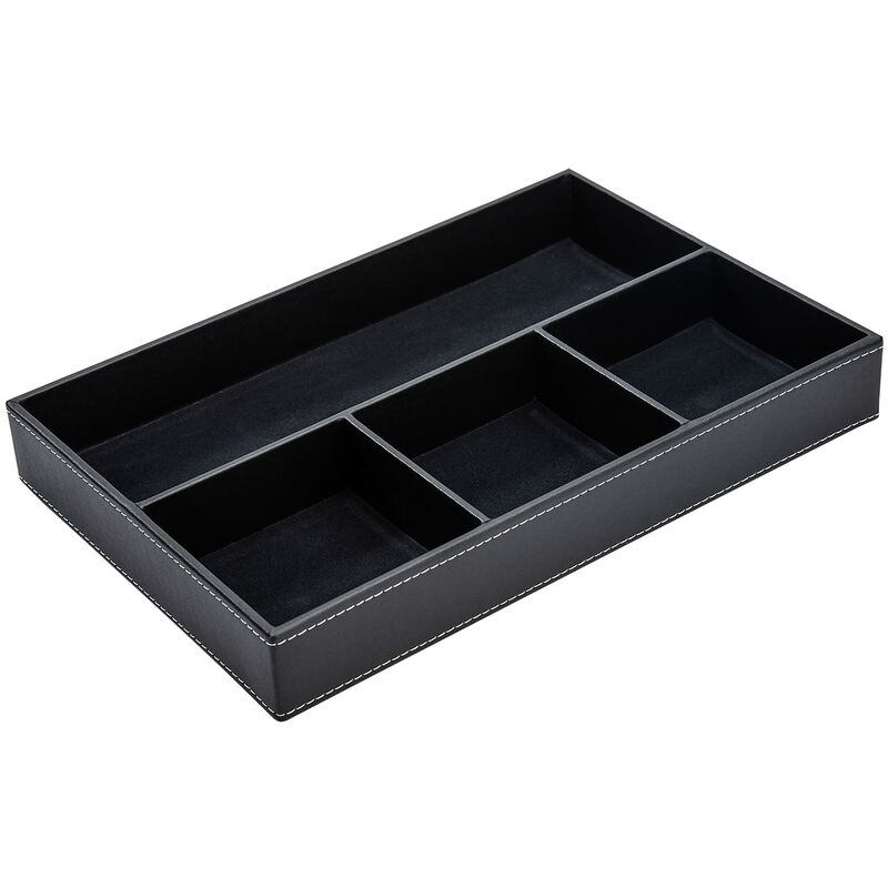 Colore: come mostrato nell'immagine Dimensioni: 30,3*20,3*4 cm Elegante spazio di archiviazione - Questo valet organizer da uomo include 4 scomparti, accessori e oggetti personali facili da riporre. archiviazione, come telefono, portafoglio, chiave, orologio, gioielli, monete, contanti e altro, per rendere le tue mattine meno frenetiche Squisita fattura: questo vassoio portaoggetti da uomo è realizzato in ecopelle. L'interno del piano del comodino è foderato;