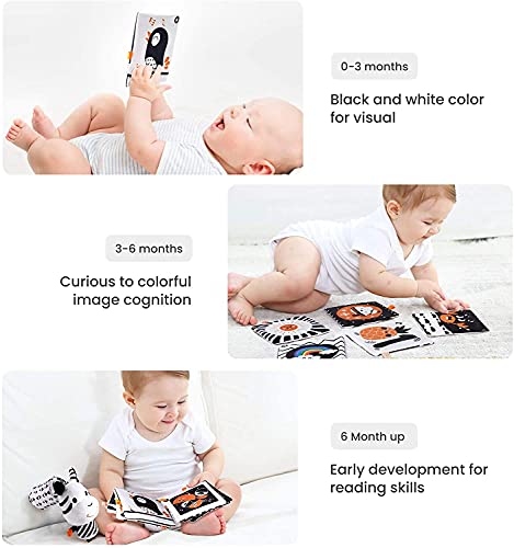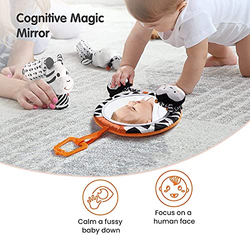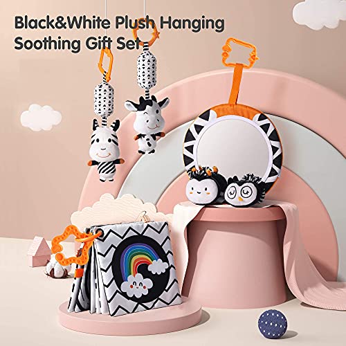 TUMAMA Giocattoli Appesi per Bambini Set Regalo Specchio Sonaglio Peluche in Bianco Nero Anelli e Stoffa Libro per Carrozzina Seggiolino Auto Passeggino Giocattolo 3 6 12 Mesi Neonati Ragazzi Ragazze