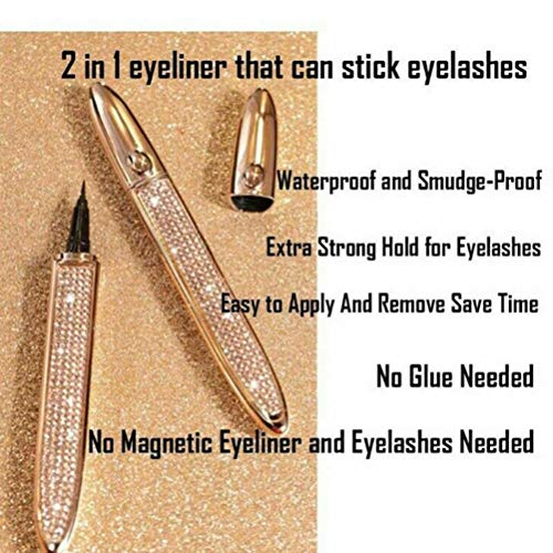 Tumnea Eyeliner, 2 in 1 Lash Glue Liner Pen, Autoadesivo Magic Eyeliner Matita per Ciglia Nera Non Magnetica Impermeabile Senza Colla