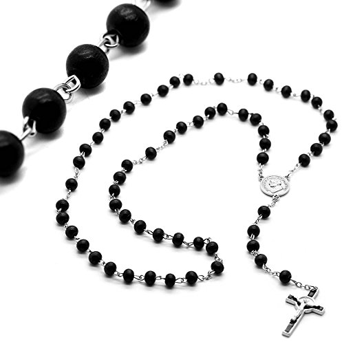 Tumundo Corona del Rosario Perle di Legno 55 cm Catenina Collana Pendente con Croce Nero