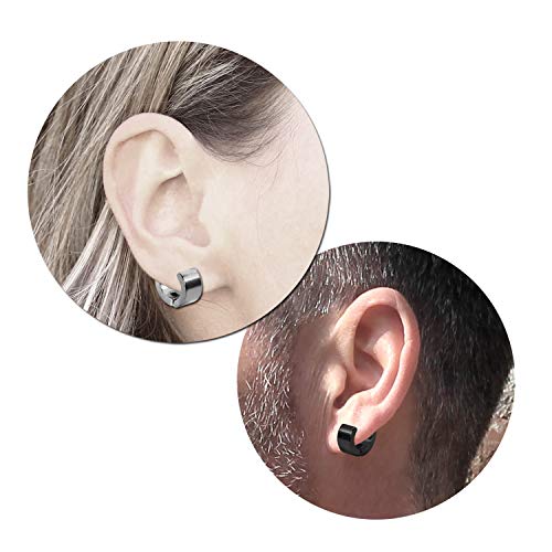 Tumundo Creoli Acciaio Fake Finto Orecchini A Clip On Senza Buchi Anello Argento Nero Unisex Hoops Huggie Piercing