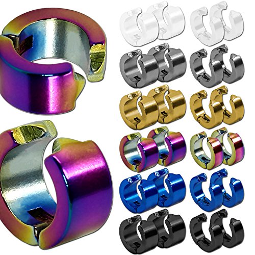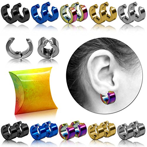 Tumundo Creoli Acciaio Orecchini A Clip Senza Buchi Oro Argento Nero Iride Hoop Huggie Unisex + Caso Regalo