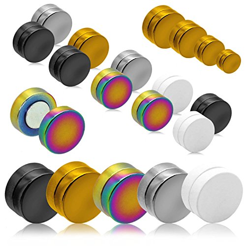 Tumundo Orecchini Calamita Magnetico Finto Plug Fake Tunnel Piercing Magnete 6 8 10 12mm Foro Non Necessario Bianco Nero