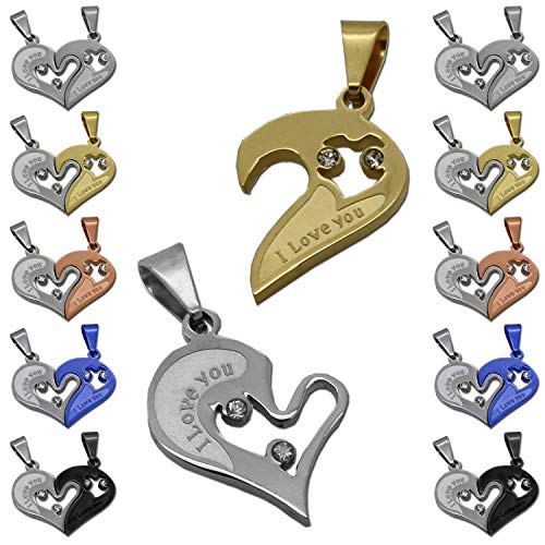 Tumundo 2 Pezzi Parti Ciondolo Pendente Cuore Heart I Love You Uomo Donna per collane Colori: Argento-Nero