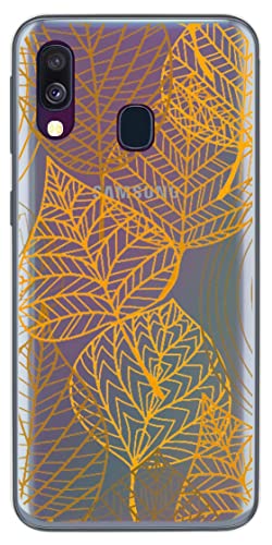 Tumundosmartphone Custodia Gel TPU 100% Trasparente per Samsung Galaxy A40 Design HOJAS Disegno