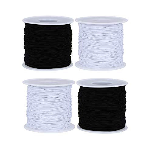 TuNan - 4 Rotoli 1 mm e 0,8 mm Braccialetto Elastico Corda Elastica, Filo Elastico Perline Perline per Tessuto, Creazione di Gioielli, Cucito - Bianco e Nero (55/55/55/55 Yards)