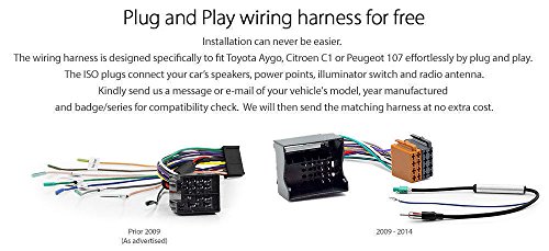 Caratteristiche e descrizione nuovo rilascio aftermarket Toyota Aygo, Citroen C1, Peugeot 107 (1st Generation, ab10) anno 2005 - 2014, 17,8 cm TFT LCD touchscreen lettore CD/DVD, USB e scheda SD.
