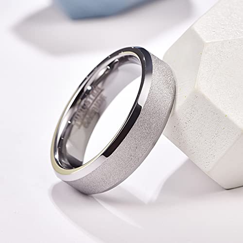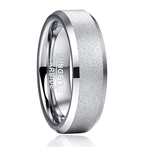 Anello in tungsteno argento largo 4mm/6mm/8mm con superficie sabbiata e bordo smussato lucido e interno confortevole che è un'ottima scelta come anello di promessa e fede nuziale.
