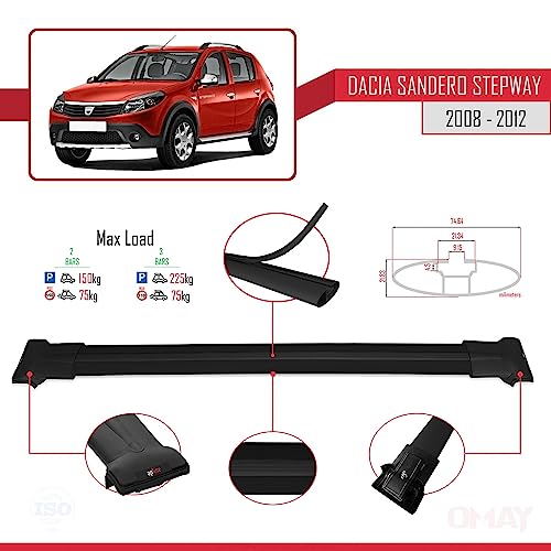 RE&AR Tuning Per Dacia Sandero/Stepway 2008-2012 Barre Portatutto Portapacchi Alluminio Nero