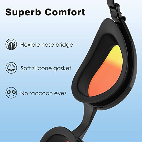 Tuocal Occhialini da nuoto, anti-appannamento, anti-appannamento, protezione UV, impermeabili, con morbido silicone, per adulti, donne, uomini, ragazzi, bambini, nero e rosso