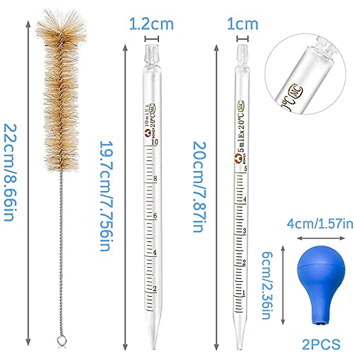 Tuofang Pipetta Vetro, 2 Pezzi 5ml 10ml Contagocce Graduato di Vetro, Pipetta Contagocce, con 1 Spazzola Pulizia, per Laboratorio, Chimica