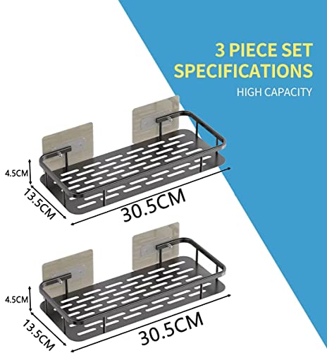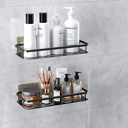Tuohwue Mensola Doccia Senza Foratura, 2 cesti Organizer Bagno, Mensola Bagno in Alluminio Aeronautico con 6 Superfici Adesive, Porta Shampoo Doccia, Nero