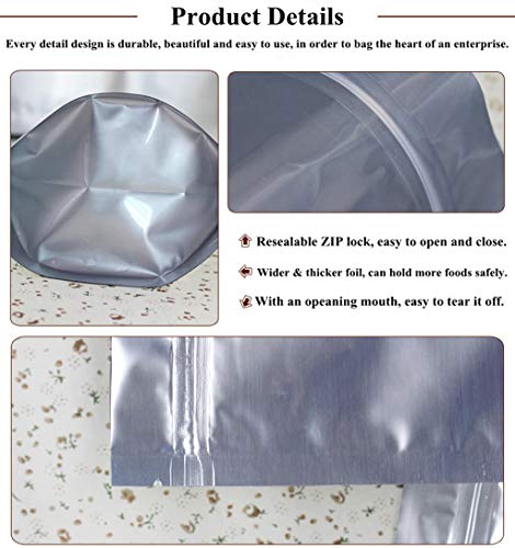 Tuokay, Sacchetto di Alluminio a Chiusura Lampo 35PCS, Sacchetti di Alimenti Richiudibili, 31cm*21cm Sacco in Argento per Alimenti, Caffè, Biscotti, Cibo per Animali