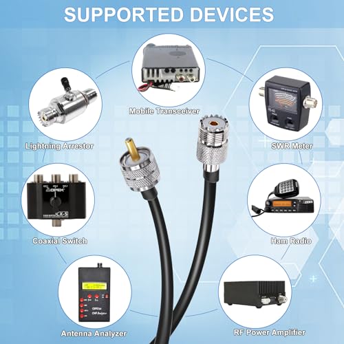 TUOLNK Cavo UHF PL259 RG58 6.6ft (2M) PL259 SO239 Cavo di prolunga da maschio a femmina Cavo coassiale CB a bassa perdita Nero per dispositivi wireless LAN radio CB radio bidirezionale