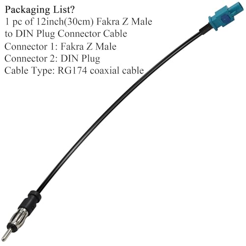【La confezione include】cavo coassiale RG174 maschio DIN da 12 pollici (30 cm) a Fakra Z maschio.