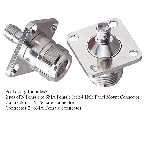 ☑ La confezione include 2 connettori per montaggio a pannello a 4 fori da N femmina a SMA femmina. (Connettore 1: connettore N femmina, connettore 2: connettore SMA femmina)