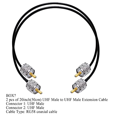 TUOLNK PL-259 Cavo jumper RG58 UHF maschio a maschio a bassa perdita 50 ohm Cavo coassiale radio CB 20 pollici (50 cm) SO239 Cavo di prolunga per antenna Wi-Fi per HAM Radio 2 pezzi
