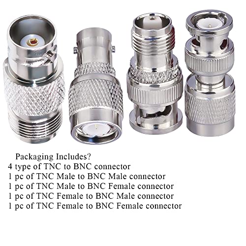 ☑ La confezione include 4 set di kit di connettori da TNC a BNC (1 pezzo di connettore da TNC maschio a BNC maschio, 1 pezzo di connettore da TNC maschio a BNC femmina, 1 pezzo da TNC femmina a connettore BNC maschio, 1 pezzo da TNC femmina a BNC femmina connettore)