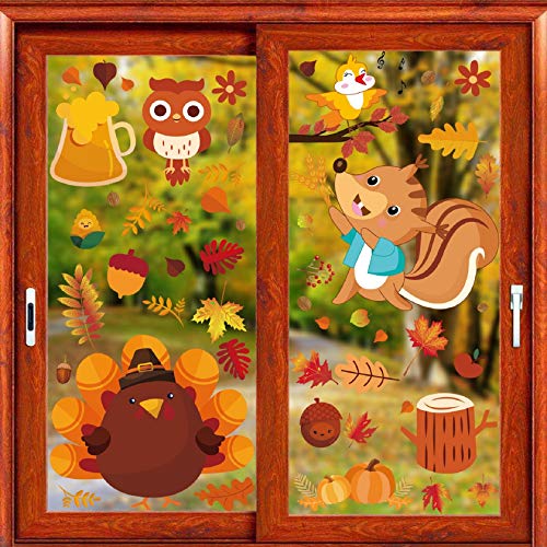 Tuopuda Adesivi Autunno per Fnestra Foglie d'Autunno Vetrofanie Ringraziamento Addobbi Rimovibile Stickers Finestra Foglie d'Acero Ghiande Decorazioni di Feste Autunnali