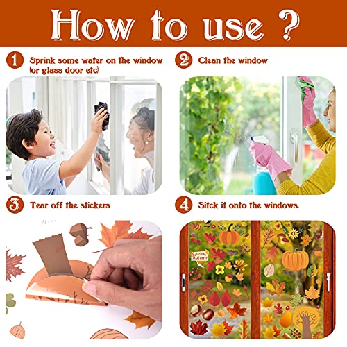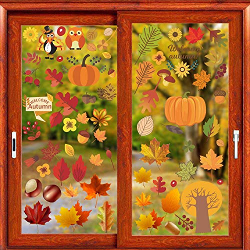 Tuopuda Decorazioni Autunno per Fnestra Ringraziamento Addobbi Foglie di acero di zucca Pigne Ghiande Raccolta di miscele Vetrofanie Adesivi Rimovibile Stickers Finestra Decorazioni di Feste Autunnali